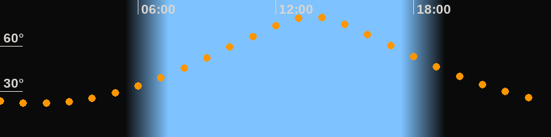 | Höchster Stand (Kulmination) | 13:34 Uhr (h = 79,3°) |