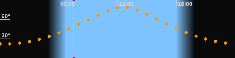 Höchster Stand (Kulmination)12:33 Uhr (h = 79,5°)