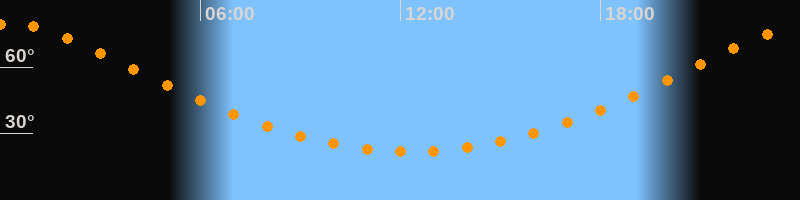 Höchster Stand (Kulmination)00:19 Uhr (h = 79,5°)