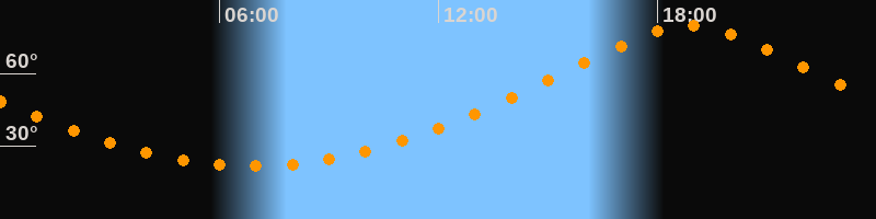 Höchster Stand (Kulmination)18:52 Uhr (h = 79,5°)