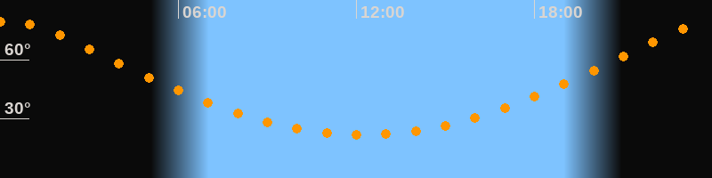 Höchster Stand (Kulmination)00:12 Uhr (h = 79,5°)