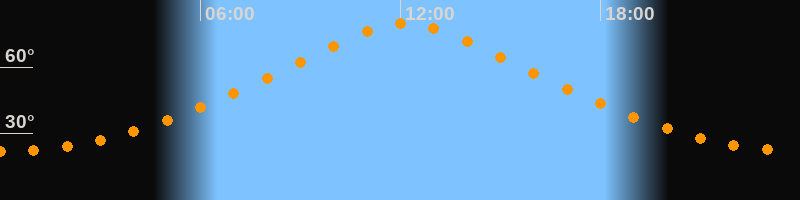 Höchster Stand (Kulmination)12:08 Uhr (h = 79,5°)
