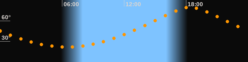 Höchster Stand (Kulmination)18:23 Uhr (h = 79,5°)
