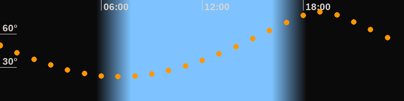 Höchster Stand (Kulmination)19:03 Uhr (h = 79,5°)