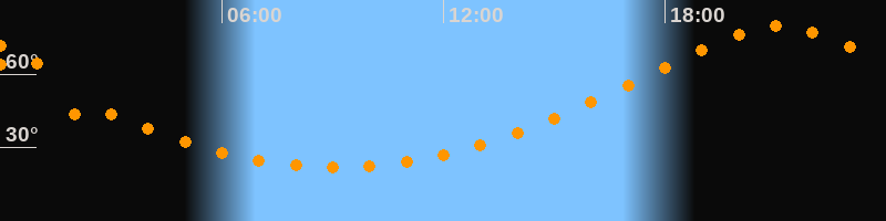 Höchster Stand (Kulmination)21:05 Uhr (h = 79,5°)