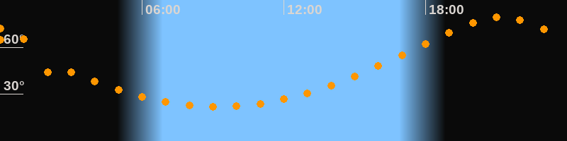 Höchster Stand (Kulmination)21:10 Uhr (h = 79,5°)