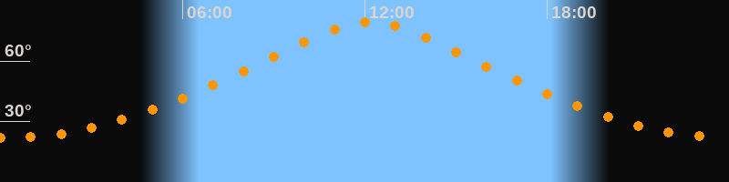 Höchster Stand (Kulmination)12:10 Uhr (h = 79,5°)