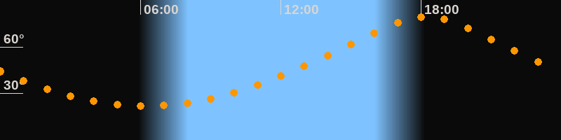 Höchster Stand (Kulmination)18:12 Uhr (h = 79,5°)