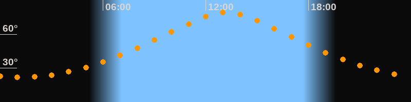 Höchster Stand (Kulmination)13:11 Uhr (h = 79,5°)