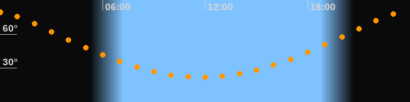 Höchster Stand (Kulmination)23:46 Uhr (h = 79,5°)