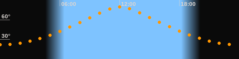 Höchster Stand (Kulmination)12:02 Uhr (h = 79,5°)