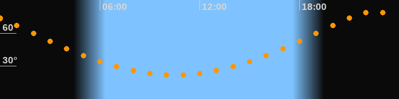 Höchster Stand (Kulmination)22:28 Uhr (h = 79,5°)
