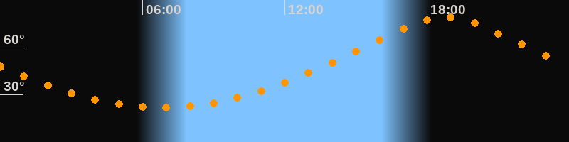Höchster Stand (Kulmination)18:48 Uhr (h = 79,5°)