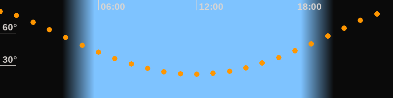 Höchster Stand (Kulmination)23:51 Uhr (h = 79,5°)