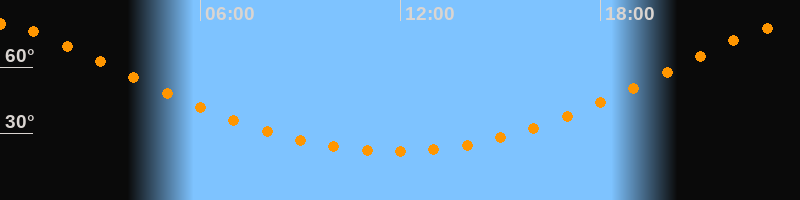Höchster Stand (Kulmination)23:47 Uhr (h = 79,5°)