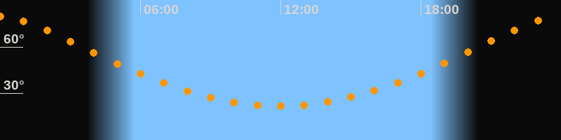 Höchster Stand (Kulmination)23:56 Uhr (h = 79,5°)