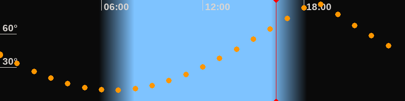 | Höchster Stand (Kulmination) | 18:40 Uhr (h = 88,4°) |