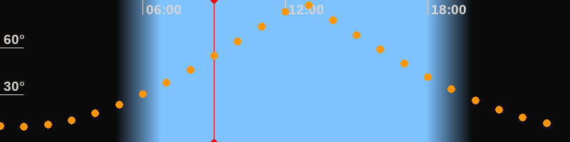 | Höchster Stand (Kulmination) | 12:43 Uhr (h = 88,4°) |