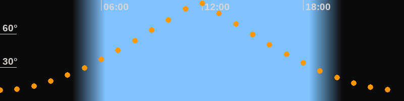 | Höchster Stand (Kulmination) | 11:47 Uhr (h = 88,4°) |