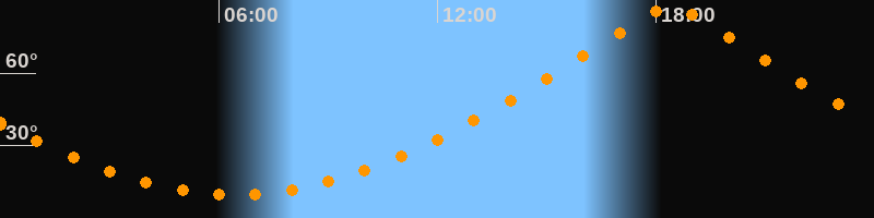 | Höchster Stand (Kulmination) | 18:24 Uhr (h = 88,4°) |