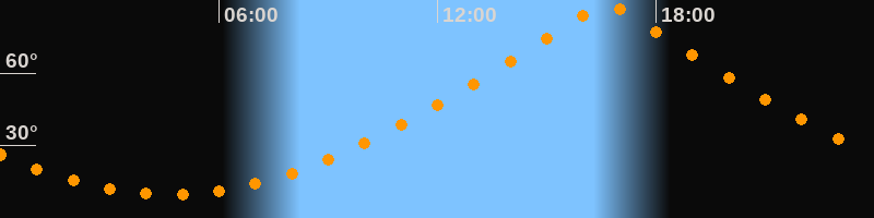 | Höchster Stand (Kulmination) | 16:38 Uhr (h = 88,4°) |