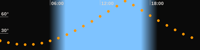 | Höchster Stand (Kulmination) | 15:05 Uhr (h = 88,4°) |