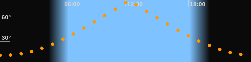 | Höchster Stand (Kulmination) | 12:19 Uhr (h = 88,4°) |