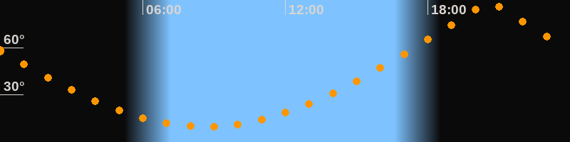 | Höchster Stand (Kulmination) | 20:36 Uhr (h = 88,4°) |