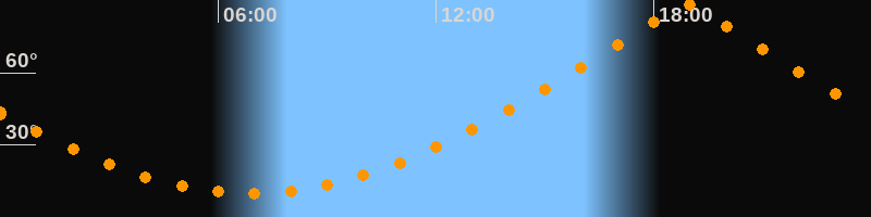 | Höchster Stand (Kulmination) | 18:54 Uhr (h = 88,4°) |