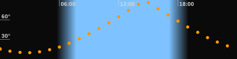 | Höchster Stand (Kulmination) | 14:38 Uhr (h = 88,4°) |