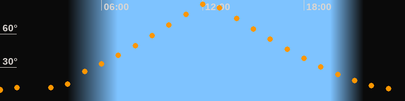 | Höchster Stand (Kulmination) | 12:18 Uhr (h = 88,4°) |