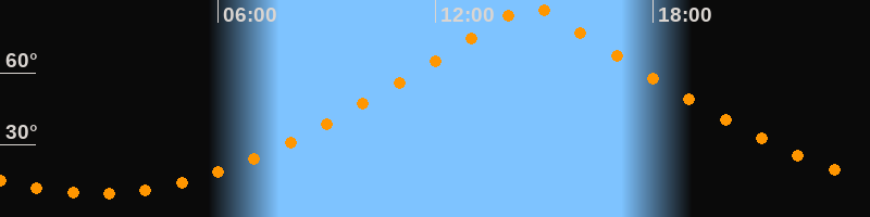 | Höchster Stand (Kulmination) | 14:36 Uhr (h = 88,4°) |
