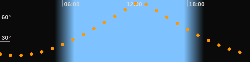 | Höchster Stand (Kulmination) | 13:25 Uhr (h = 88,4°) |