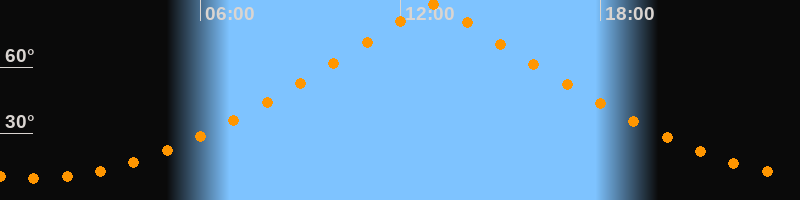 | Höchster Stand (Kulmination) | 12:58 Uhr (h = 88,4°) |