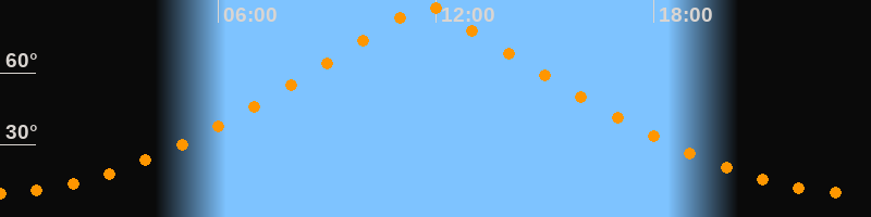 | Höchster Stand (Kulmination) | 11:43 Uhr (h = 88,4°) |