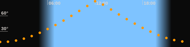| Höchster Stand (Kulmination) | 12:09 Uhr (h = 88,4°) |