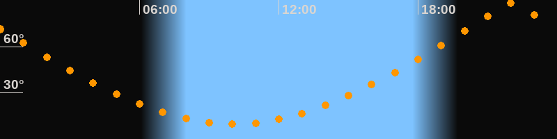 | Höchster Stand (Kulmination) | 22:02 Uhr (h = 88,4°) |
