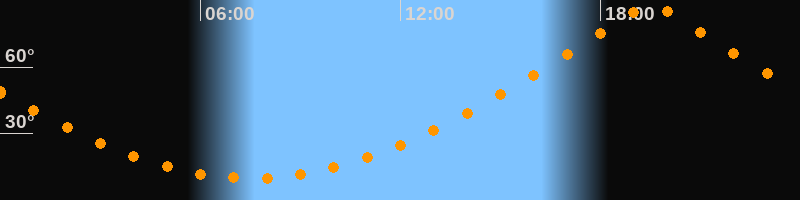 | Höchster Stand (Kulmination) | 19:32 Uhr (h = 88,4°) |