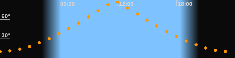 | Höchster Stand (Kulmination) | 11:44 Uhr (h = 88,4°) |