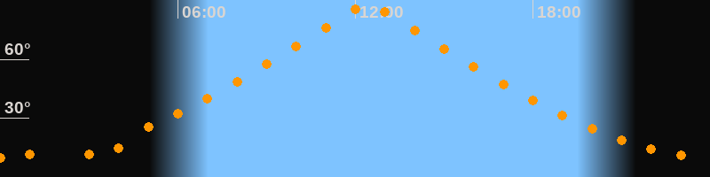 | Höchster Stand (Kulmination) | 12:25 Uhr (h = 88,4°) |