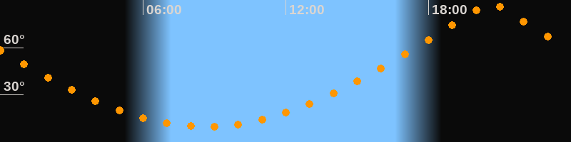 Höchster Stand (Kulmination)20:36 Uhr (h = 88,4°)