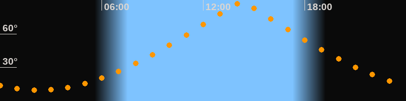 | Höchster Stand (Kulmination) | 14:15 Uhr (h = 88,4°) |