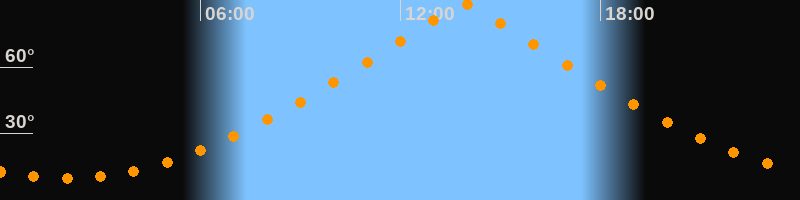 | Höchster Stand (Kulmination) | 13:55 Uhr (h = 88,4°) |