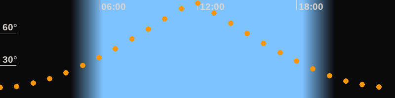 | Höchster Stand (Kulmination) | 11:47 Uhr (h = 88,4°) |