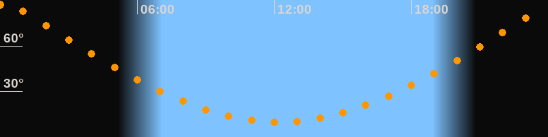 | Höchster Stand (Kulmination) | 00:12 Uhr (h = 88,4°) |