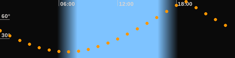 Höchster Stand (Kulmination)18:48 Uhr (h = 88,4°)