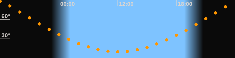 Höchster Stand (Kulmination)00:02 Uhr (h = 88,4°)