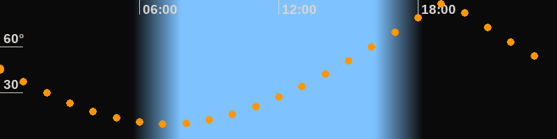 | Höchster Stand (Kulmination) | 19:10 Uhr (h = 88,4°) |