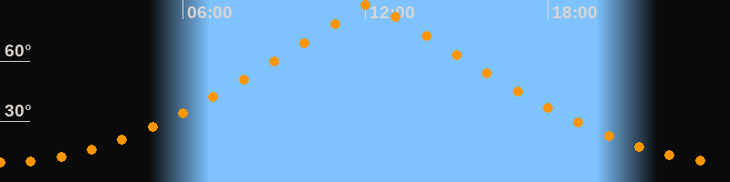 | Höchster Stand (Kulmination) | 12:10 Uhr (h = 88,4°) |