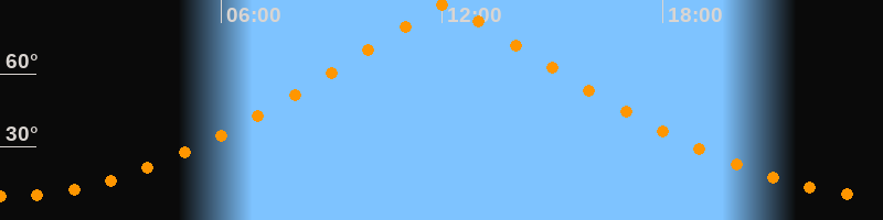 | Höchster Stand (Kulmination) | 12:06 Uhr (h = 88,4°) |